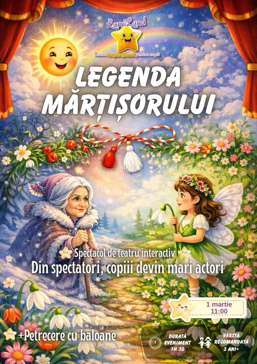 În acest spectacol interactiv, copiii descoperă magia tradițiilor românești și învață, prin joc și emoție, că binele, bunătatea și speranța înving întotdeauna.