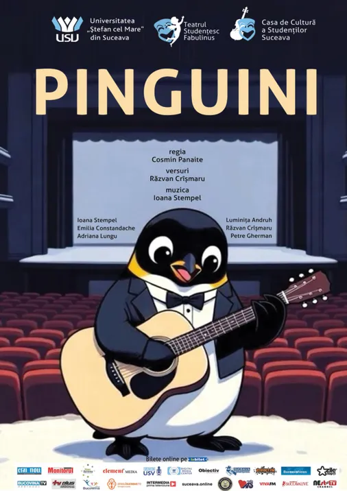 PINGUINI este un spectacol cu muzică live, versuri în rimă și cântece originale, gândit pentru copii, dar savurat cu plăcere și de adulți.